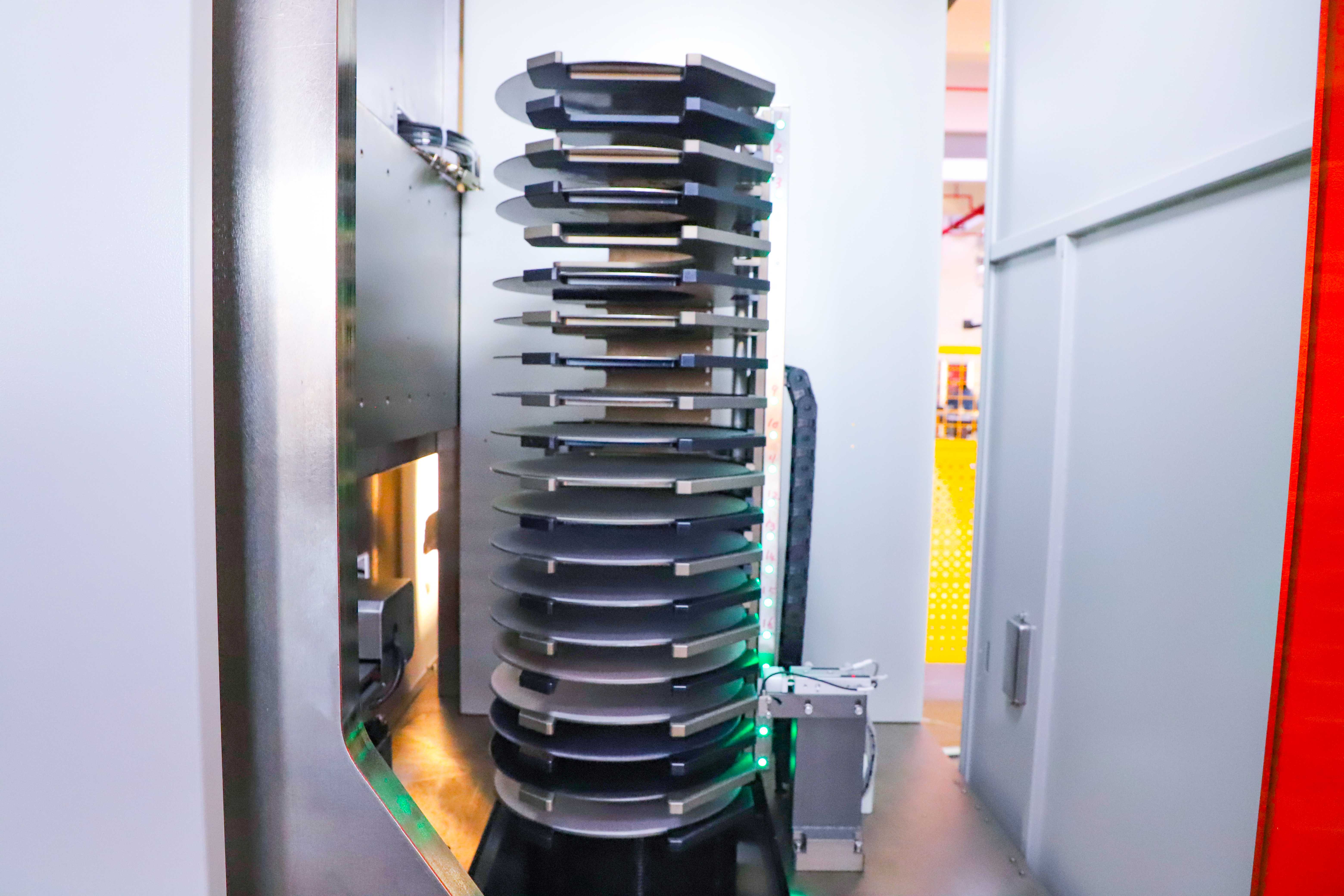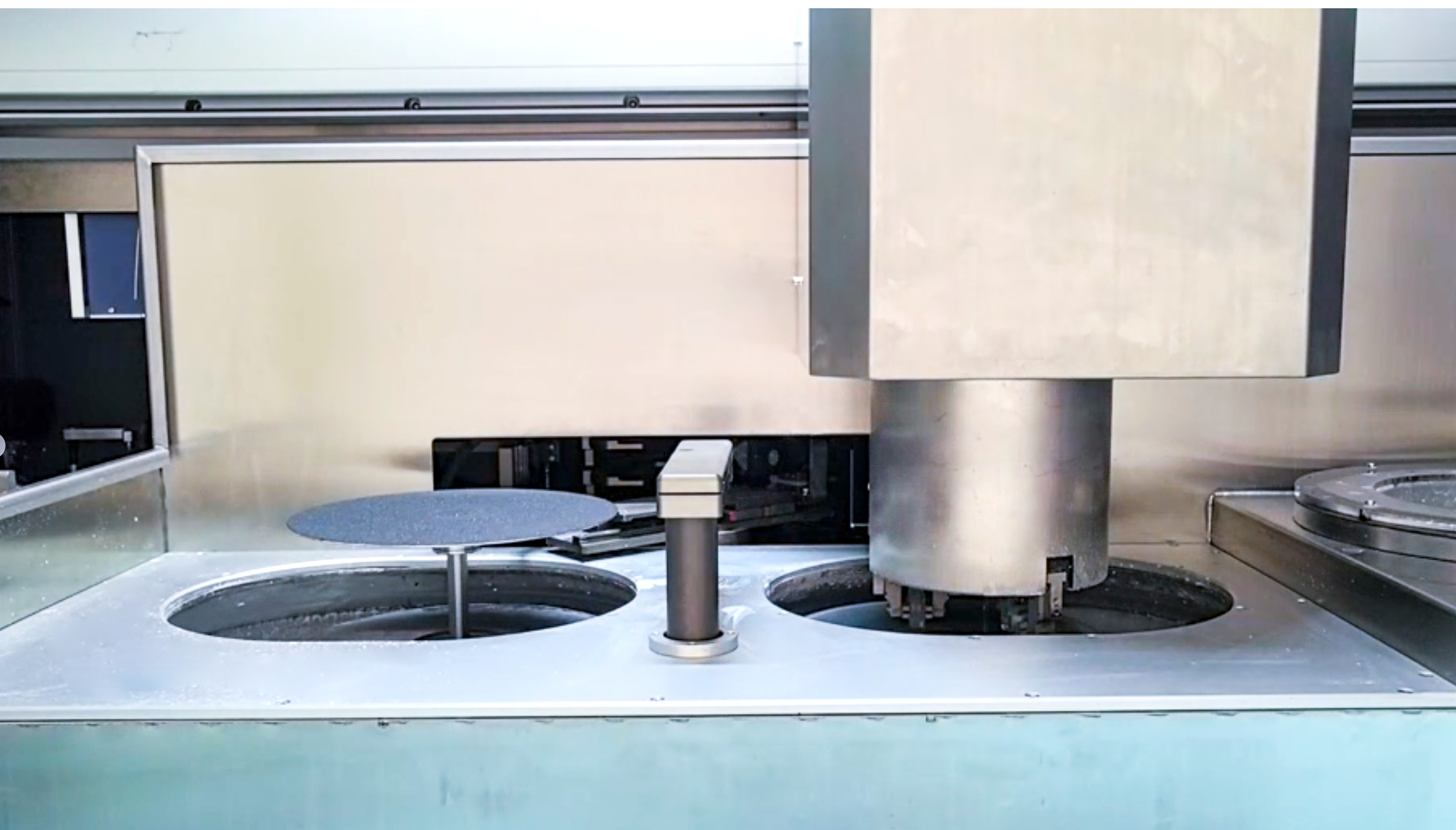 7)Estações de trabalho duplas com troca automática de disco de moagem; pode acomodar até 20 discos de moagem.